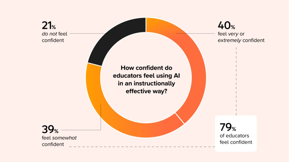 Artificial intelligence is quickly becoming a trusted tool in the classroom. Over the past two years, AI usage among educators has grown sixfold. With this surge in usage comes growing confidence. The ECR shows that 79% of surveyed educators feel confident in using generative AI in an instructionally effective way. Teachers are also reporting that AI tools are saving them time, with many gaining back one to five hours each week. Educators are embracing AI and eager for more training to unlock its full potential.