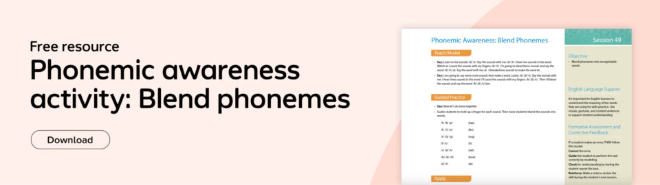 For a classroom activity with modeling, guided practice, and application opportunities, download the following blend phonemes activity.
