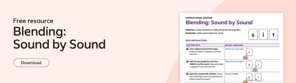 Blending sounds: Teaching students to connect individual sounds smoothly into a whole word.
